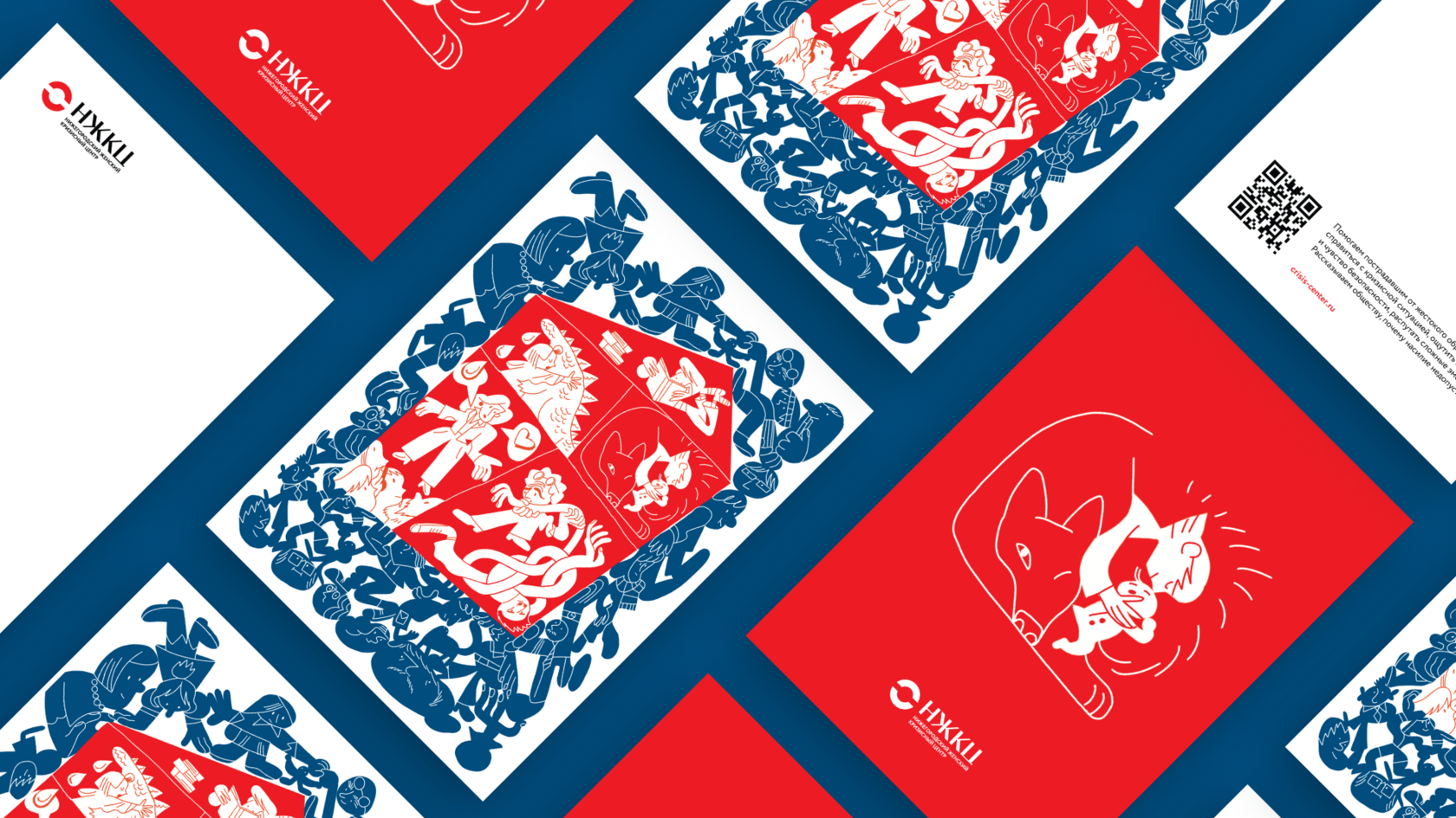 Ключевым образом иллюстрации стал дом — собирательный образ кризисного центра, где каждая комната отражает разные направления нашей работы.