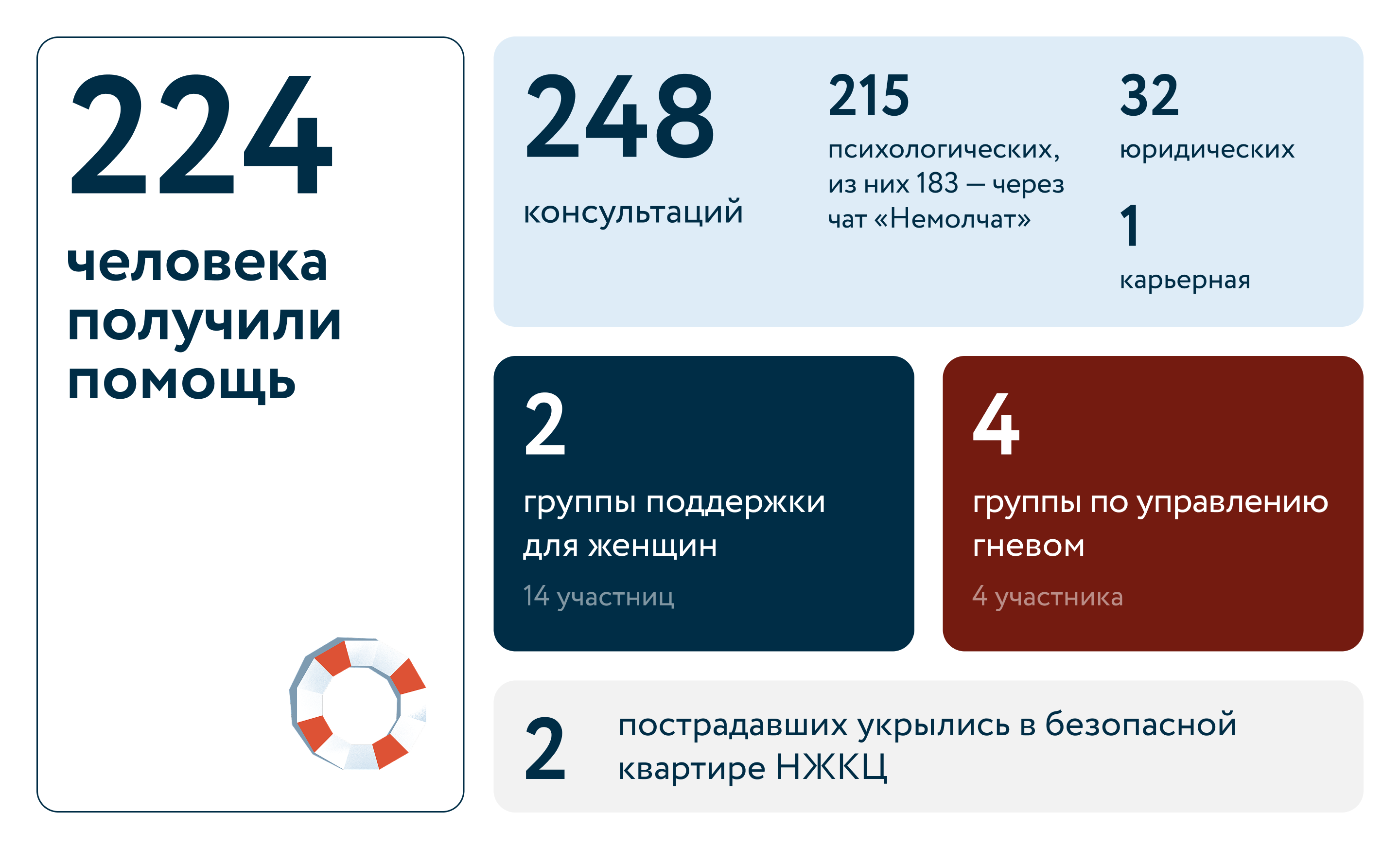 В феврале помощь в центре получили 224 человека, это на 58% больше, чем в прошлом месяце. Специалисты центра помогали пострадавшим справиться с последствиями насилия со стороны близких людей, оказывали поддержку в ситуации сильнейшего эмоционального давления и физического воздействия.